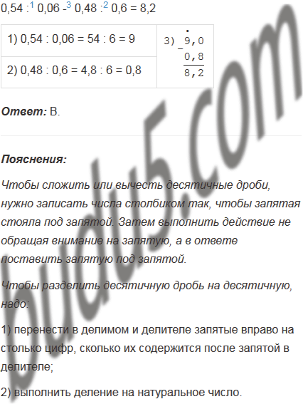 Чему равно значение выражения 0,54 : 0,06 - 0,48 : 0,6?