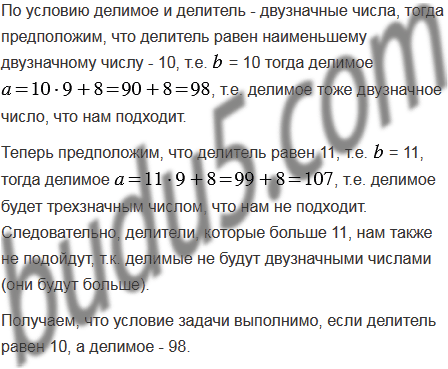 При делении двух двузначных чисел в частном получается 9, а в остатке - 8. Чему равно делимое?
