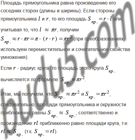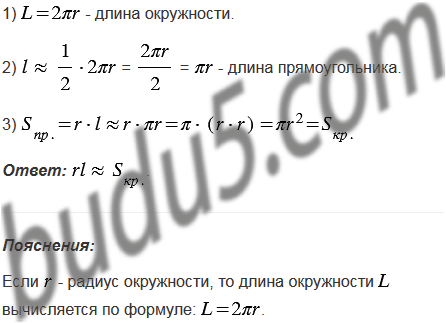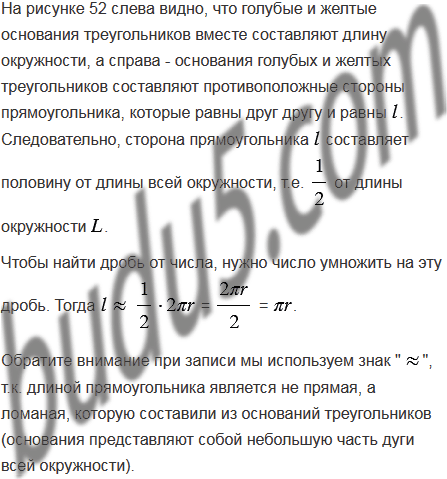 На рисунке 52 проиллюстрирован старинный способ вычисления площади круга. Объясните, почему произведение приближенно равно площади круга.