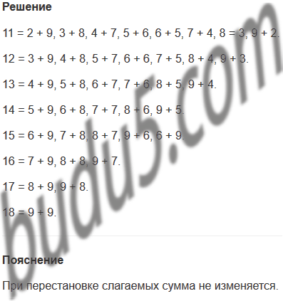 Задание № 12. Представь числа 11, 12, 13, 14, 15, 16, 17, 18 в виде суммы двух однозначных слагаемых всеми возможными способами.