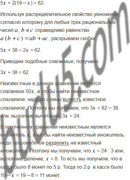 В кассе было 19 монет по 2 р. и по 5 р. на общую сумму 62 р. Сколько монет каждого вида было в кассе?