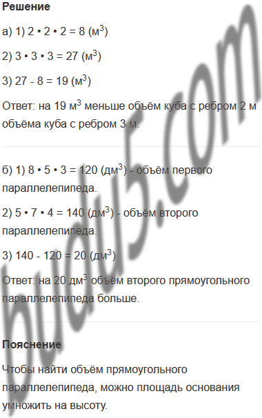 а) На сколько кубических метров объём куба с ребром 2 м меньше объёма куба с ребром 3 м?