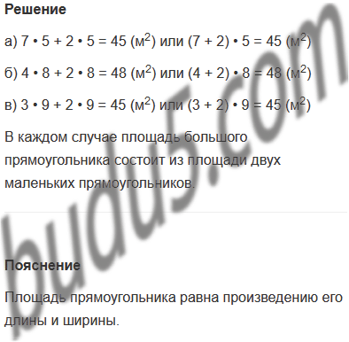 Повтори, как найти площадь прямоугольника и свойства умножения.
