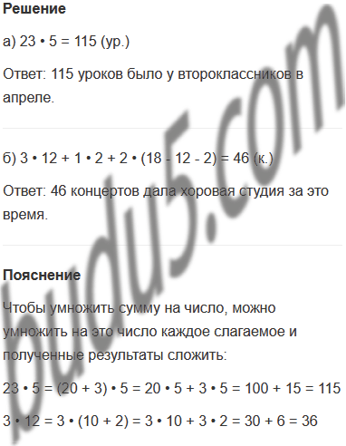 а) В апреле было 23 учебных дня. Сколько уроков было у второклассников в апреле, если у них по расписанию ежедневно 5 уроков?