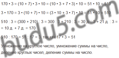 Задание № 1. Составь все возможные равенства из чисел 170, 3, 510. Какие приёмы умножения и деления выражают эти равенства?