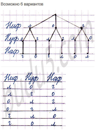 Задание № 4. Три поросёнка - Ниф - Ниф, Нуф- Нуф и Наф - Наф - решили построить себе домики. Выбрали три прекрасных места: в лесу, на озеру и на горе - и начали составлять "дерево" и таблицу вариантов. Составь "дерево" и таблицу в своей тетради и помоги Нифу, Нуфу и Нафу найти все возможные варианты.
