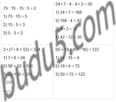 | 18 • 9 + 32 • 9 | 3 • (7 • 8 + 52) | 24 • 7 : 4 - 4 • 3 |
