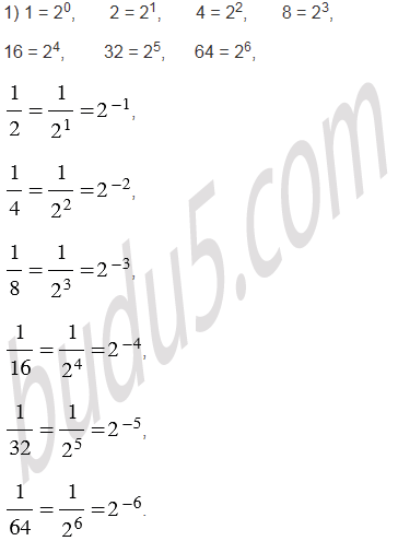 Представьте числа 1, 2, 4, 8, 16, 32, 64,